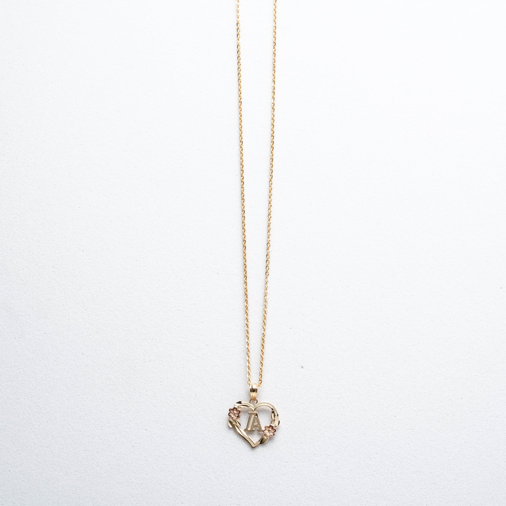 10K Rose Gold Blossom Heart A Initial Necklace