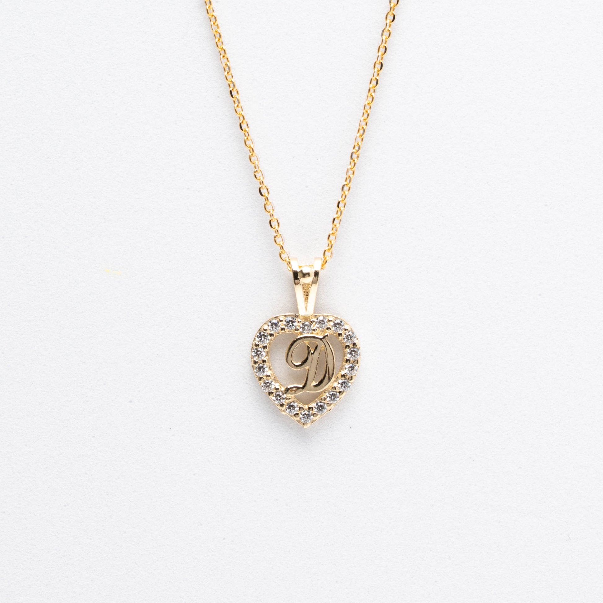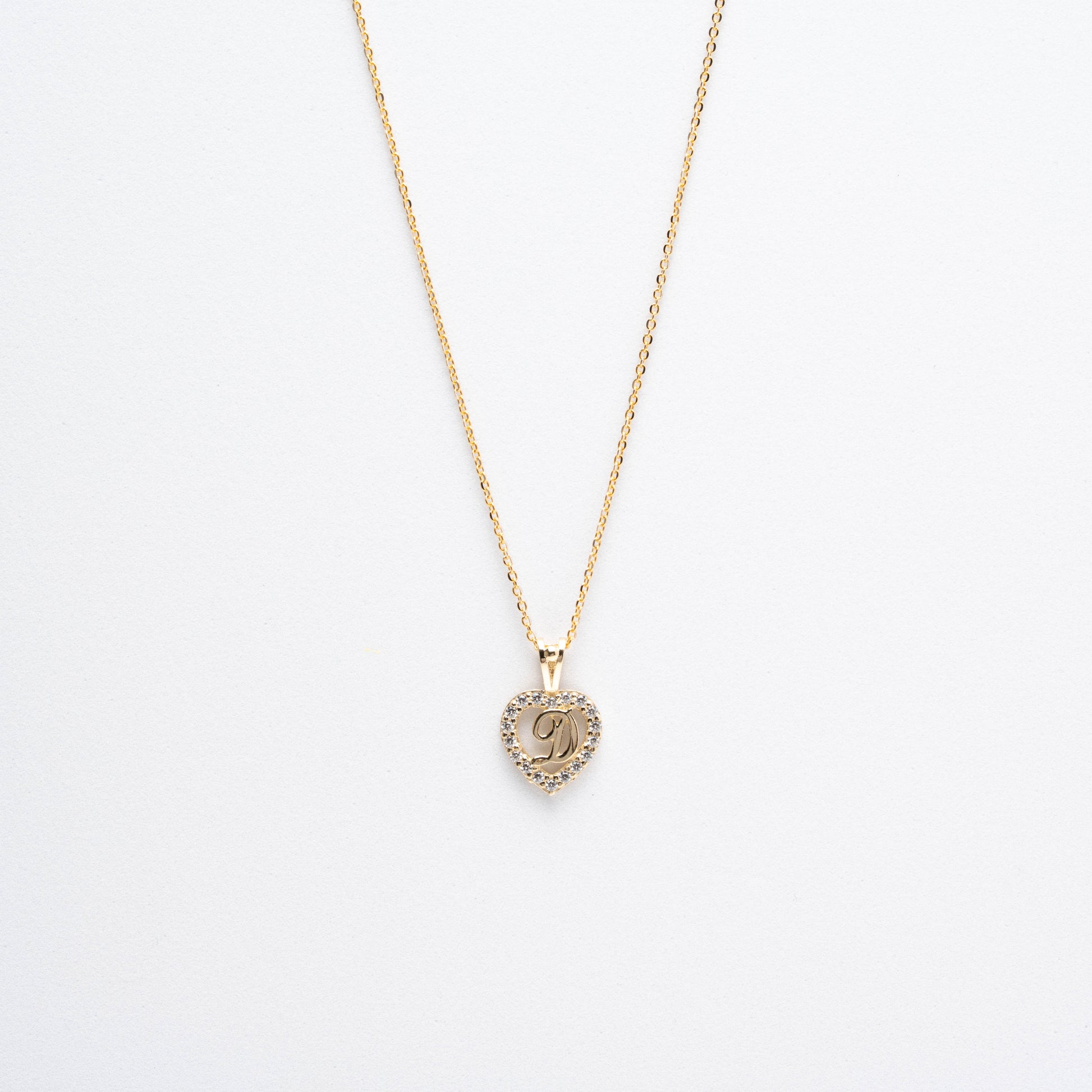 10K Gold Heart D Initial Necklace
