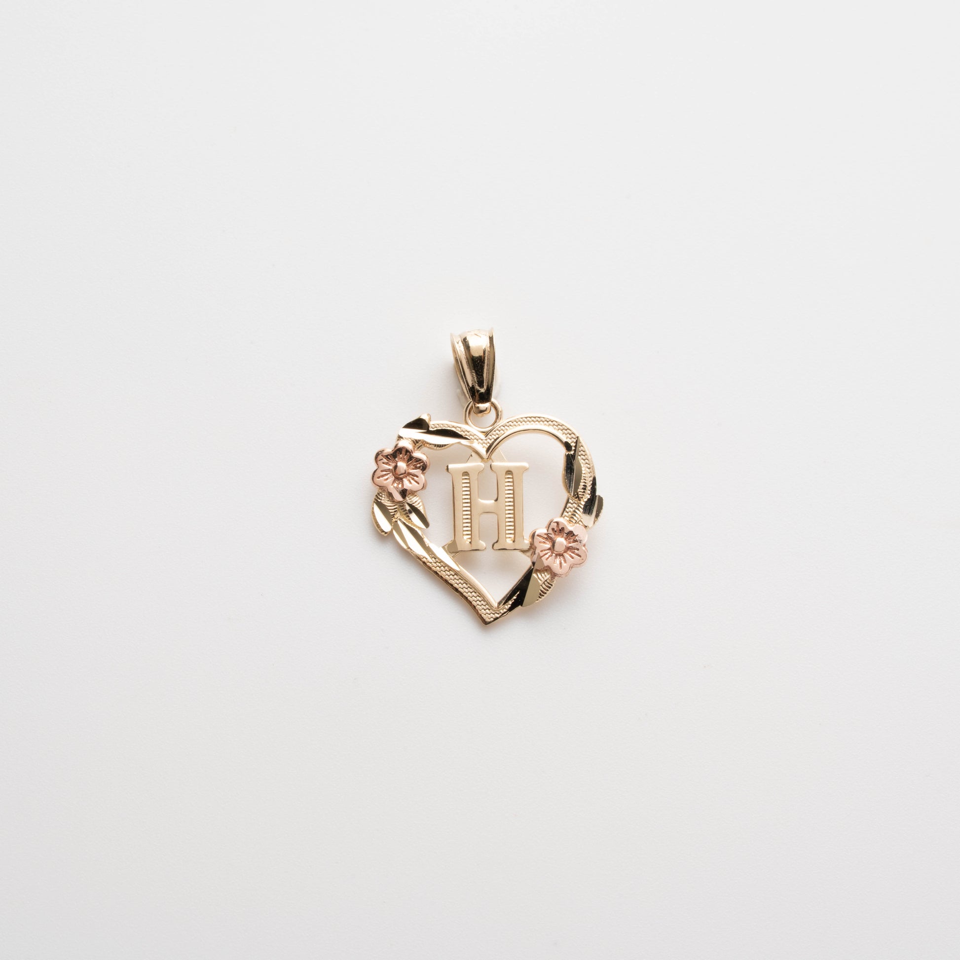 10K Gold Heart H Initial Pendant