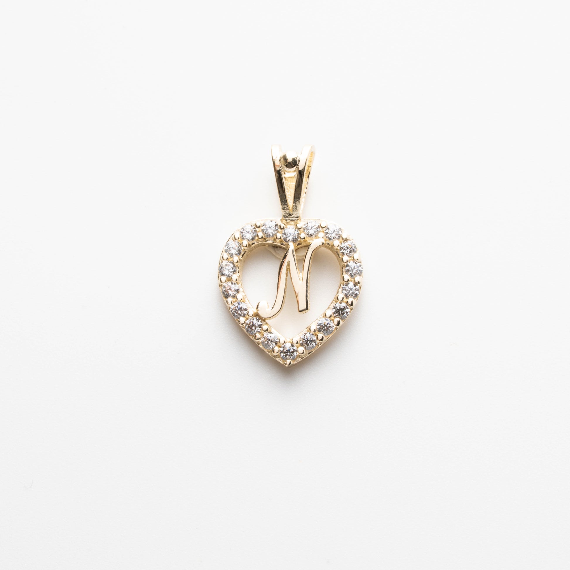 This elegant piece features a heart-shaped pendant adorned with sparkling cubic zirconia for a dazzling effect. Choose your initial to make it uniquely yours. The necklace is displayed with a delicate yet strong solid rolo chain, available in 16, 18, 20 inches, offering a refined and elegant look. This versatile necklace is perfect for layering or wearing alone, providing endless possibilities for personalization and style. Plus, a matching ring is available in our ring collection to complete your look.