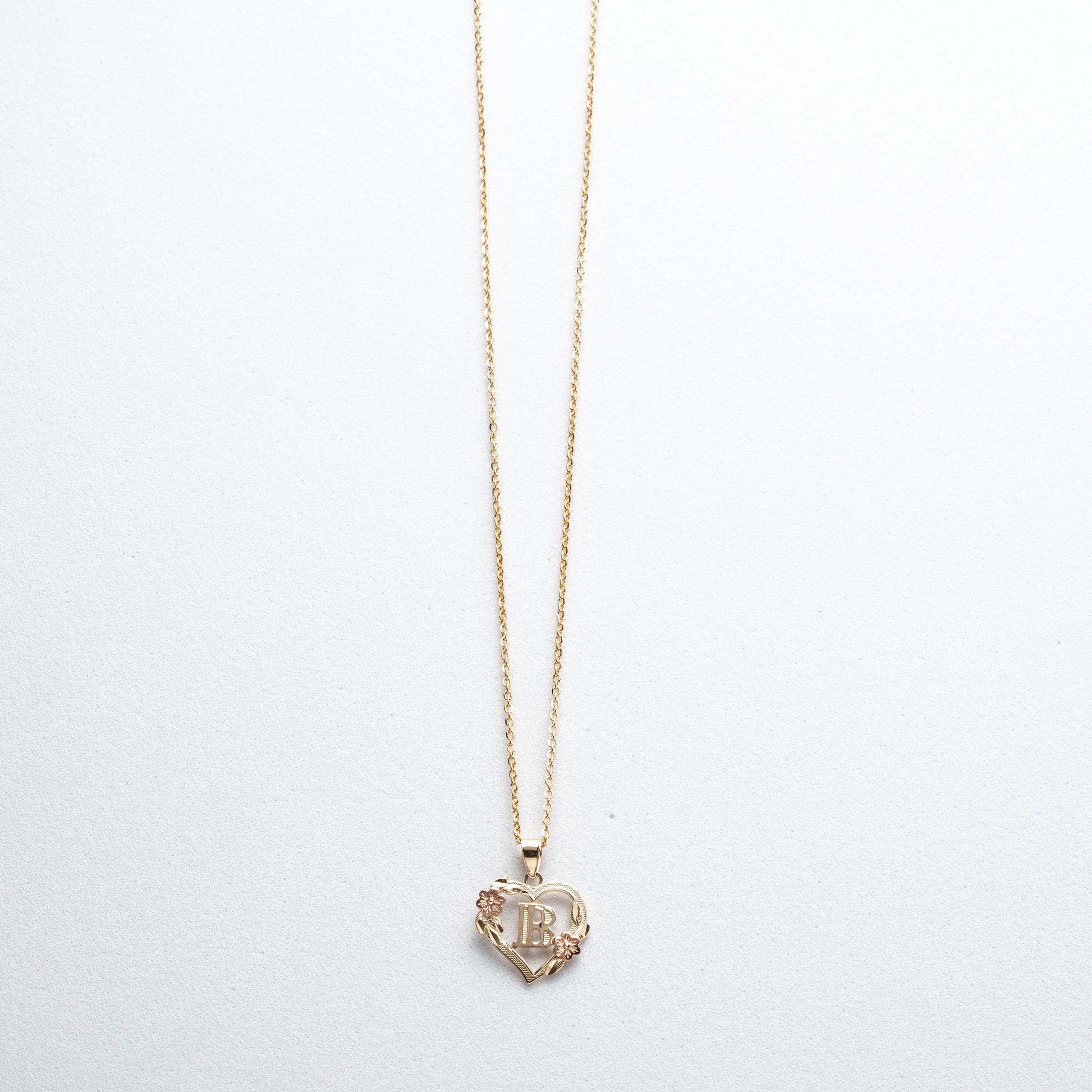 10K Rose Gold Blossom Heart B Initial Necklace