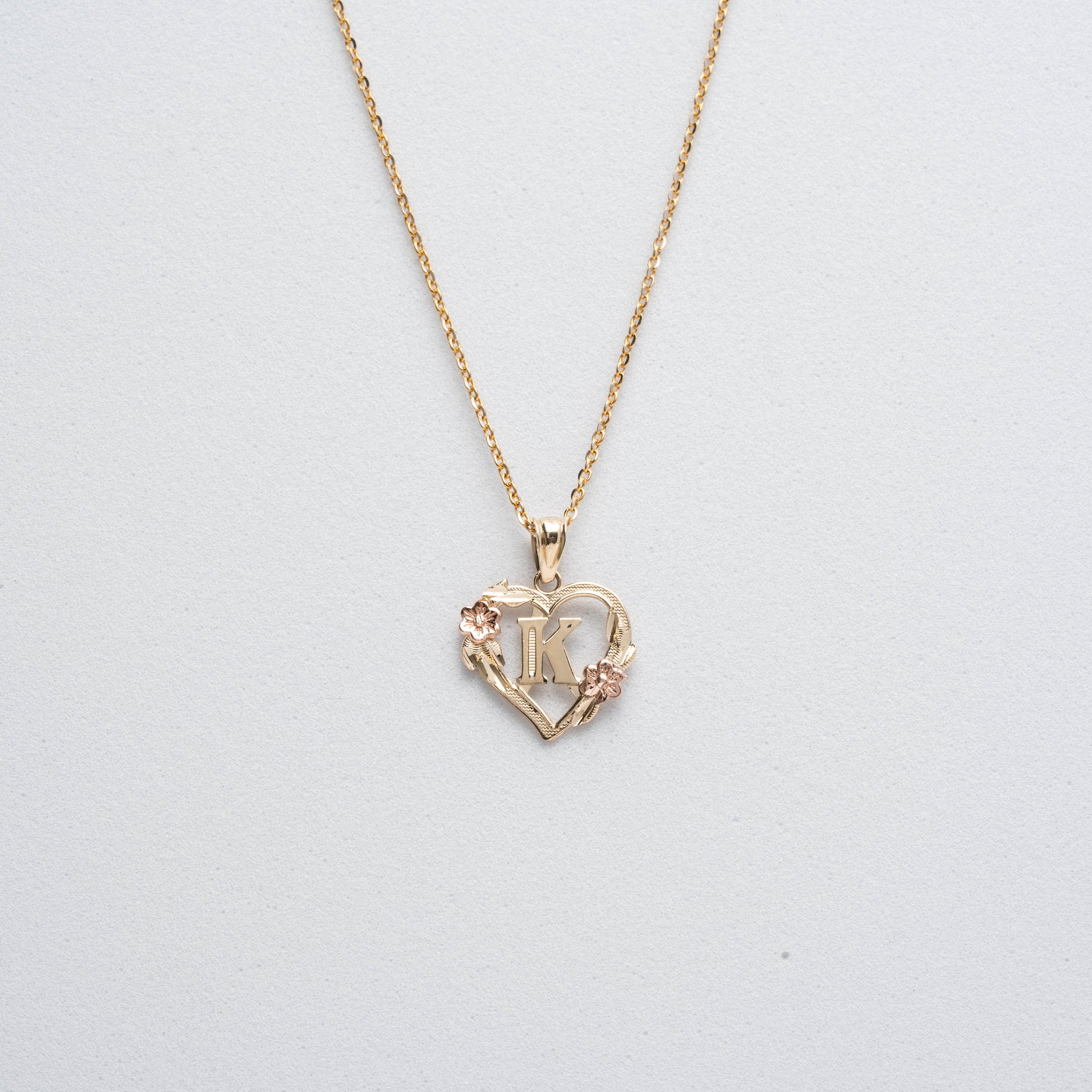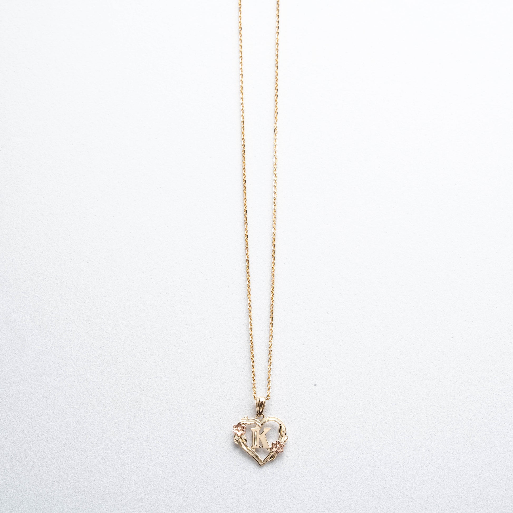 10K Rose Gold Blossom Heart K Initial Necklace