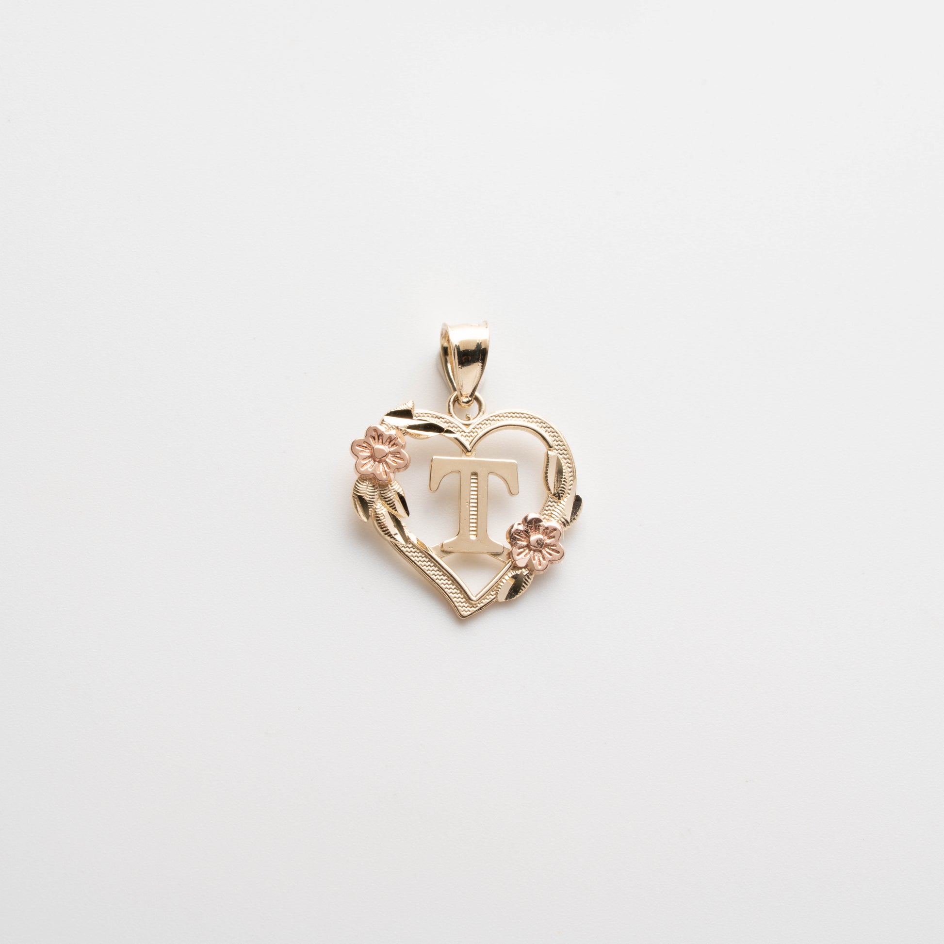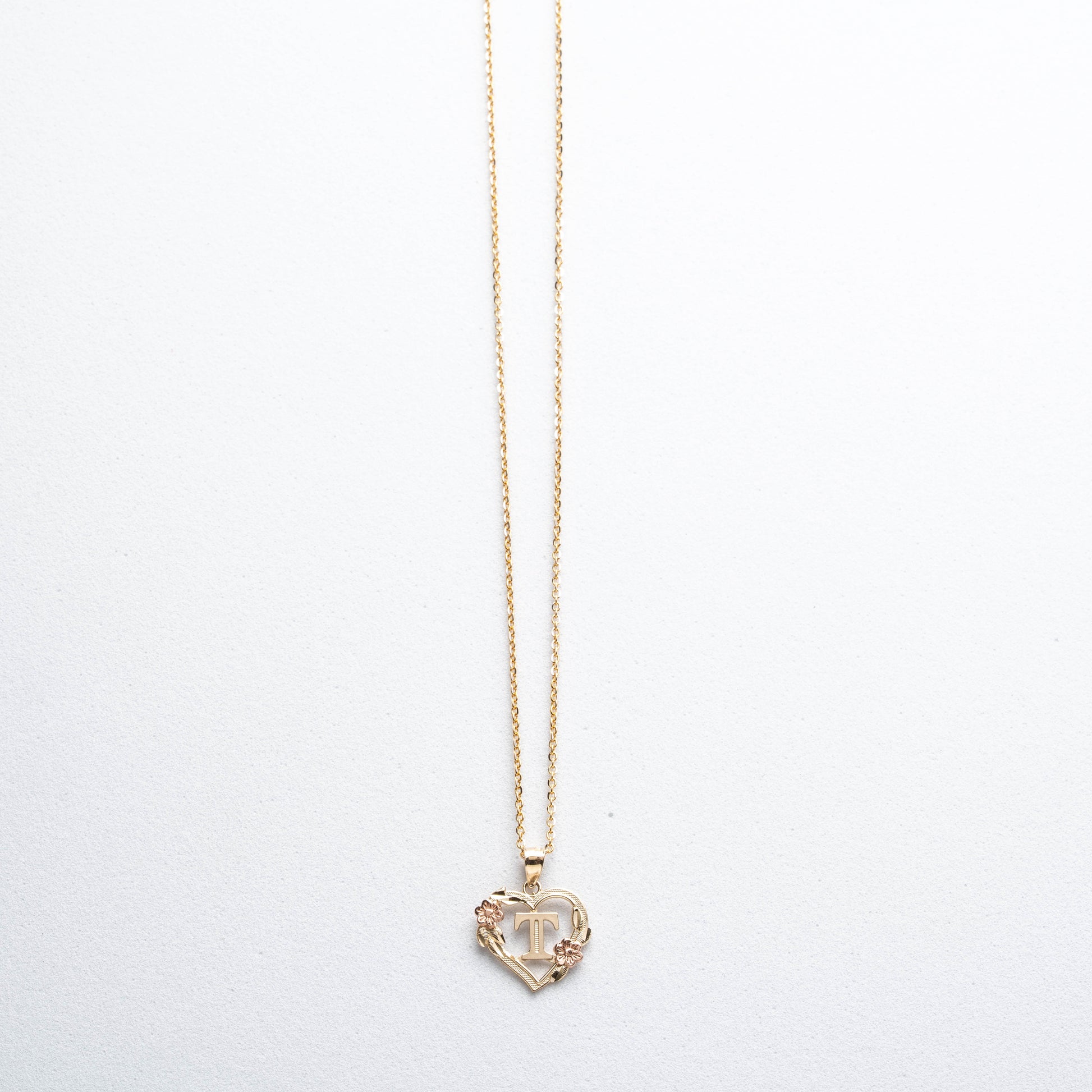 10K Rose Gold Blossom Heart T Initial Necklace