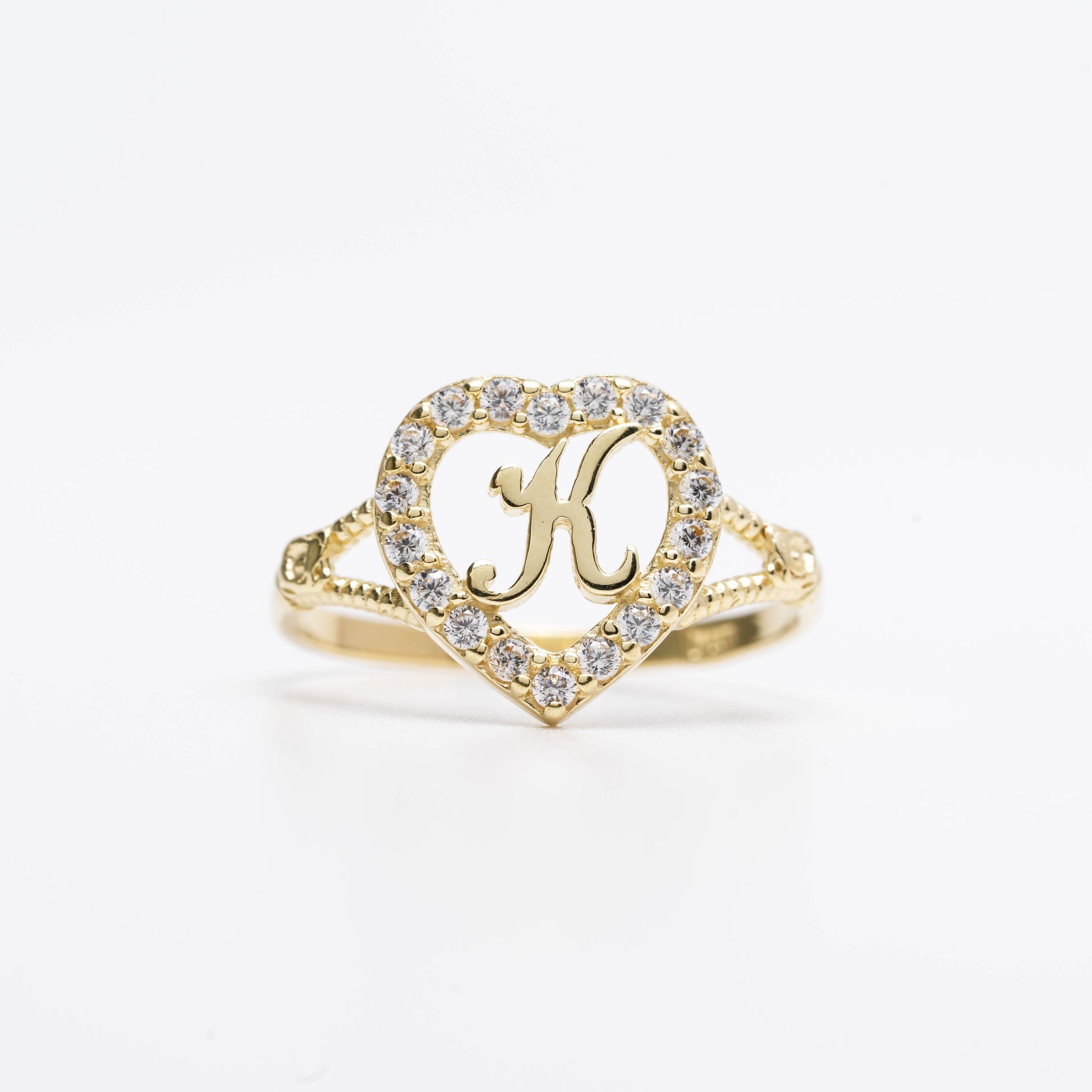 This charming ring features a beautifully engraved initial on its top, adding a personal touch. A matching initial necklace is also available for a coordinated look.