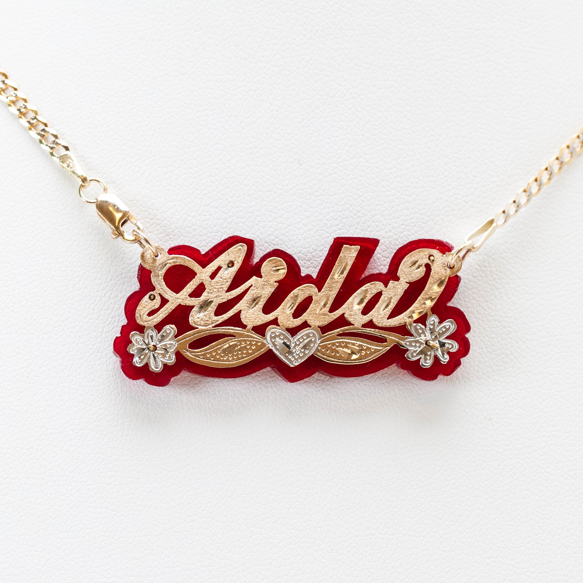 - Name Plate: 10K Yellow Gold with White Gold accent on flower and heart